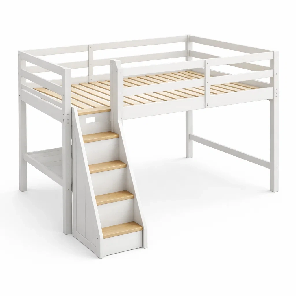 Letto a soppalco in legno di pino bianco con scala integrata