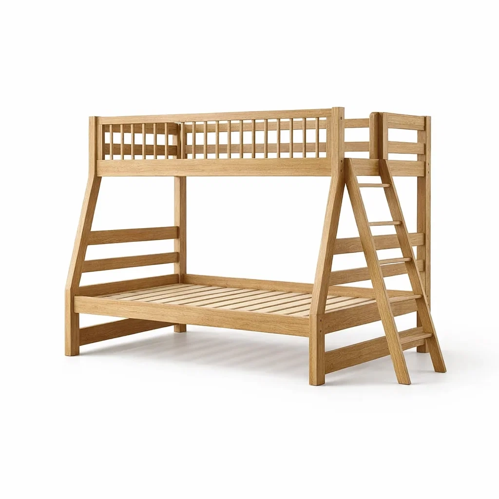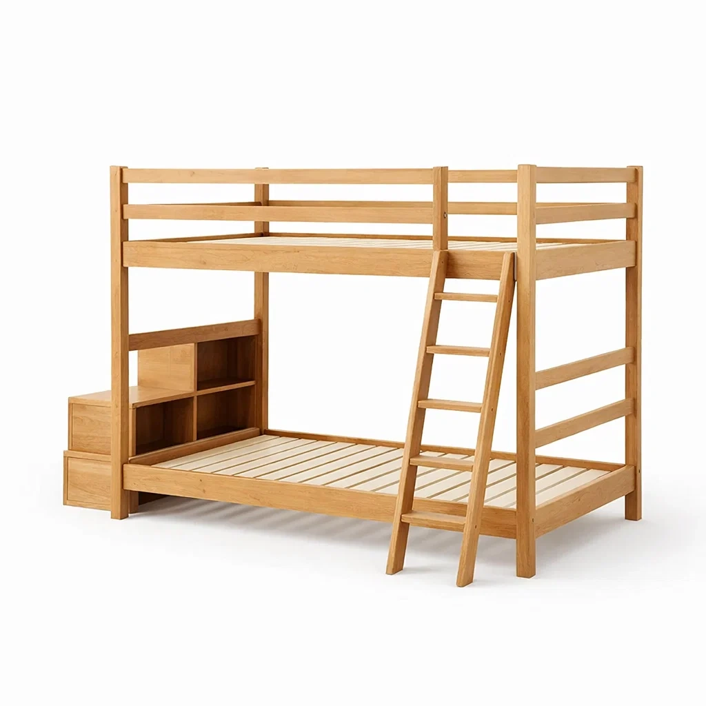 Letto a castello in legno di quercia con scala e spazio di archiviazione