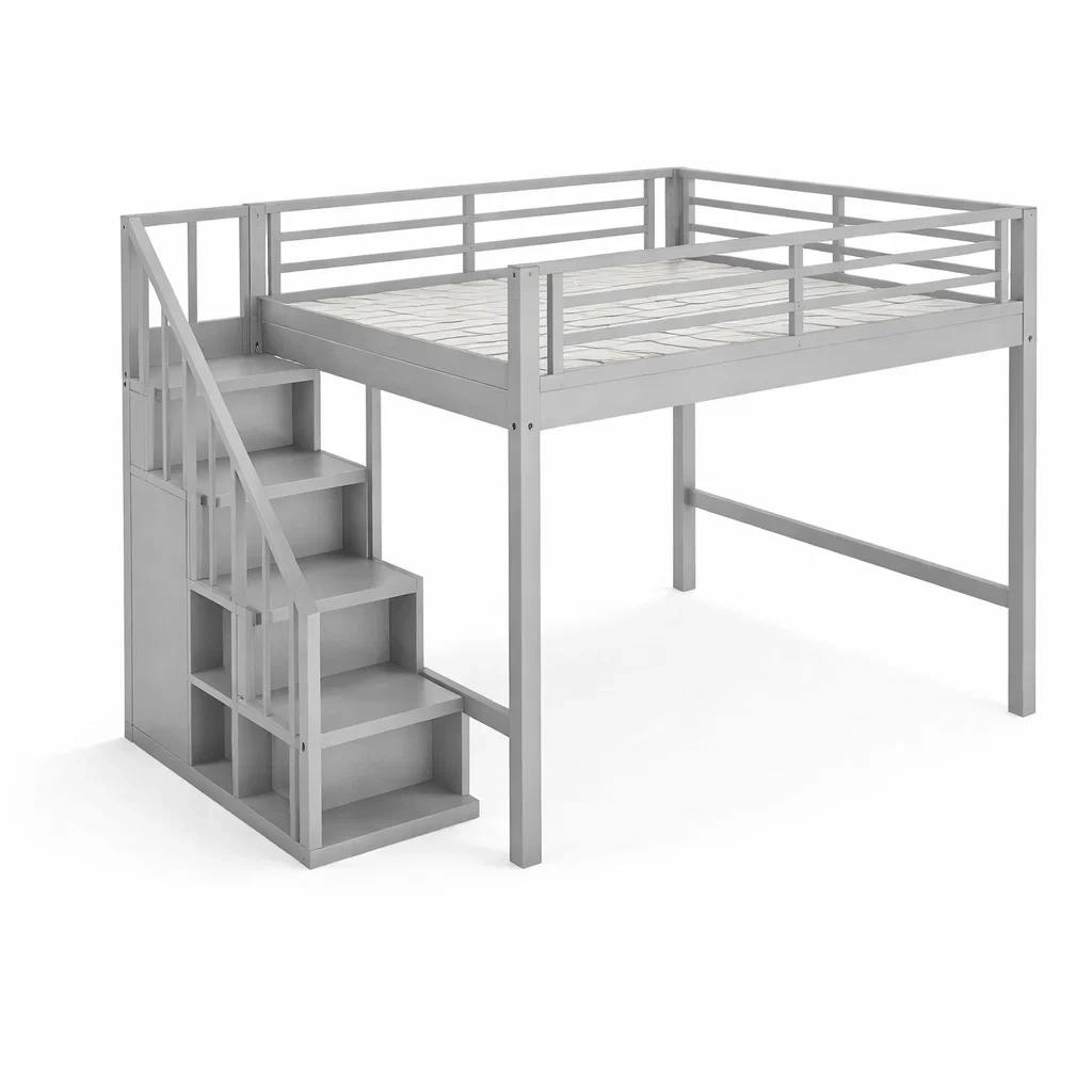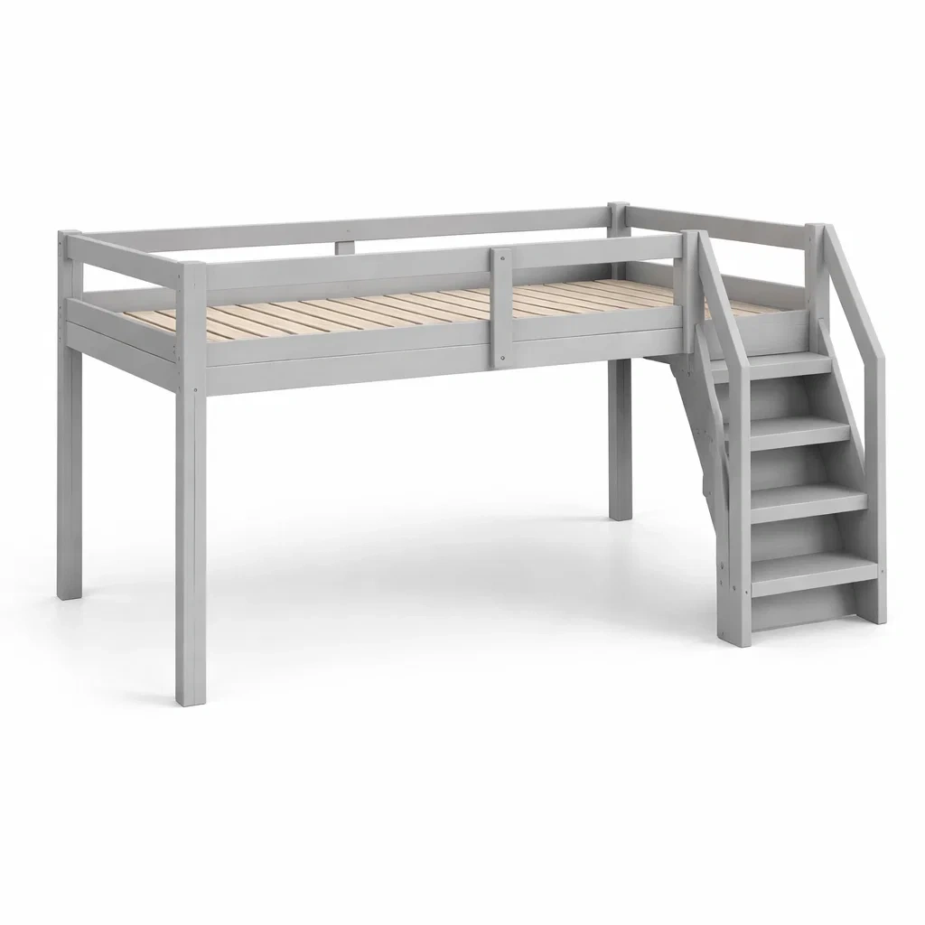 Letto a soppalco grigio in legno con scala