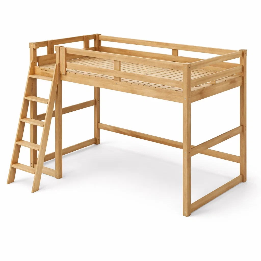 Letto a soppalco in legno con scaletta laterale