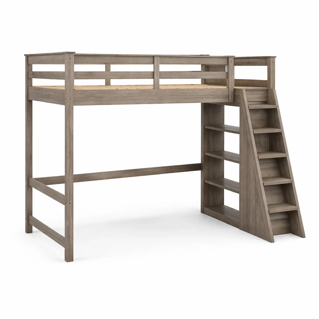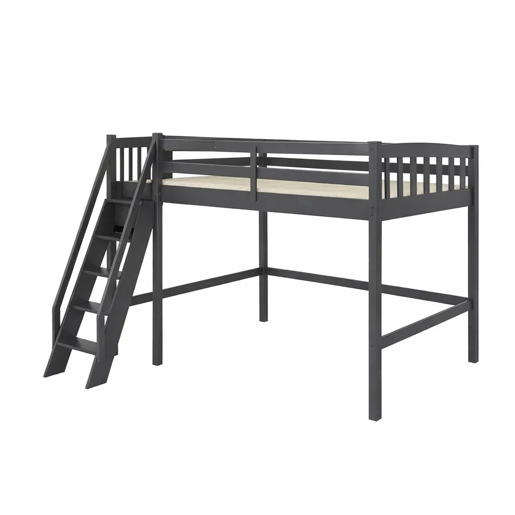 Letto a soppalco in legno grigio con scala