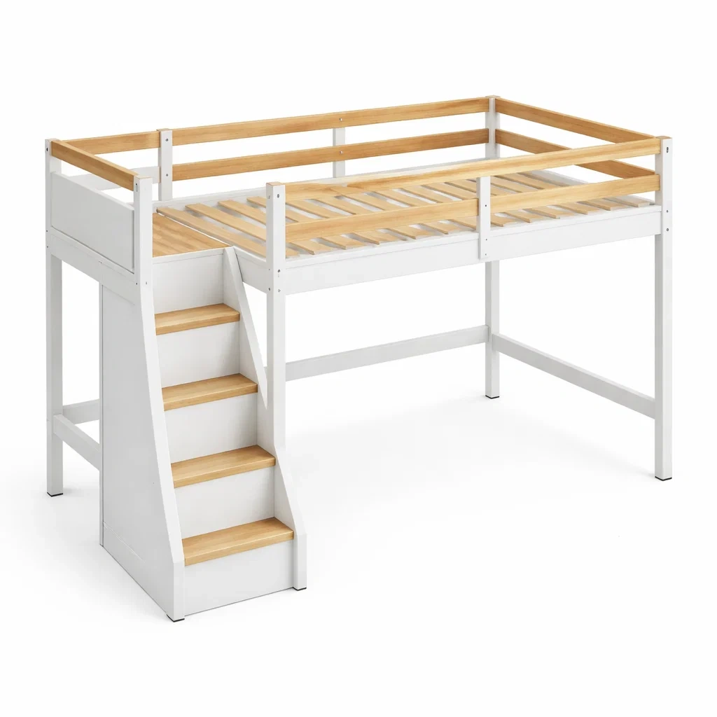 Letto a soppalco in legno di pino bianco con scala integrata