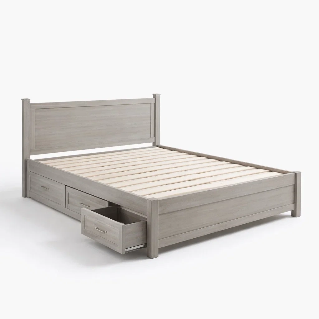 Letto contenitore matrimoniale in legno massello grigio con cassetti integrati