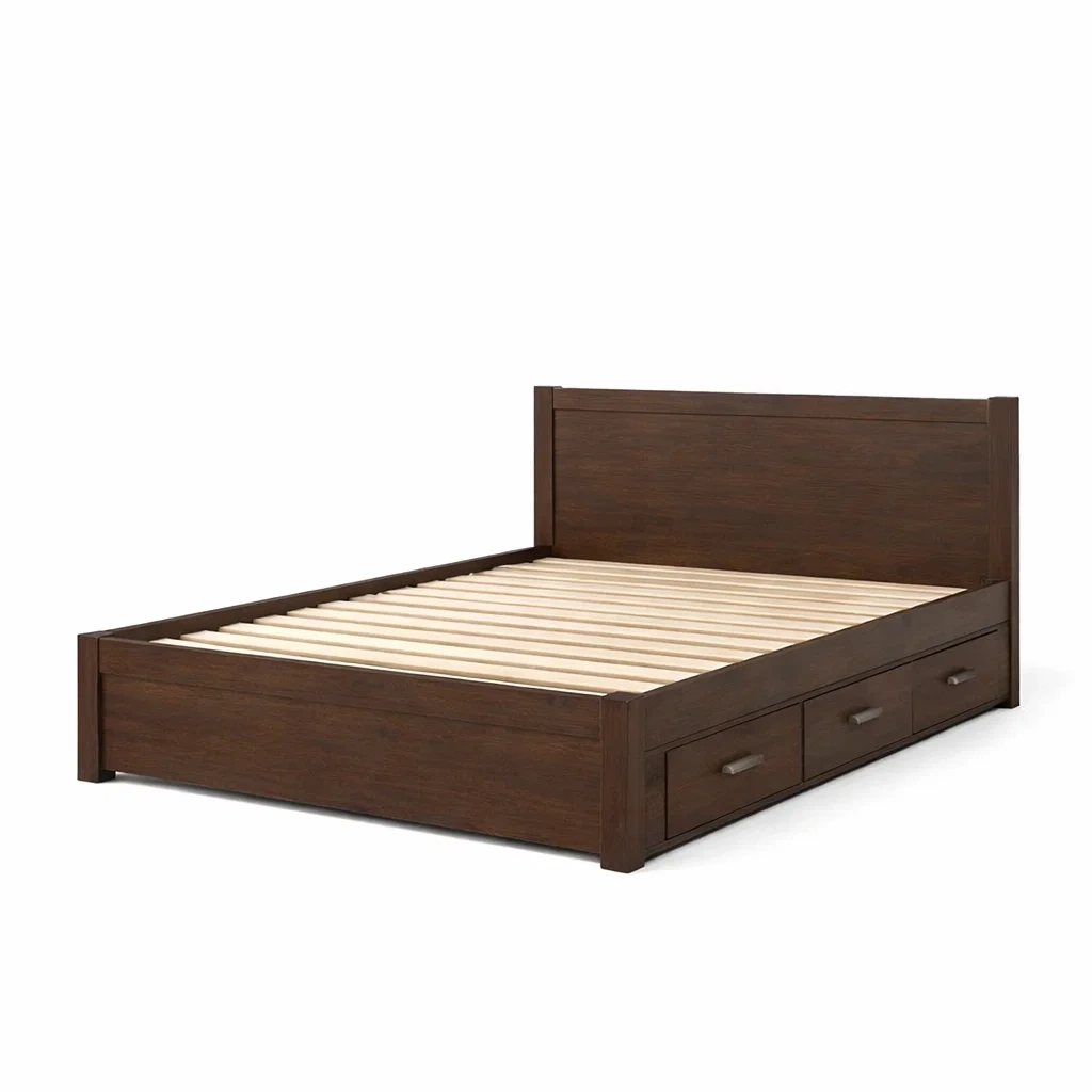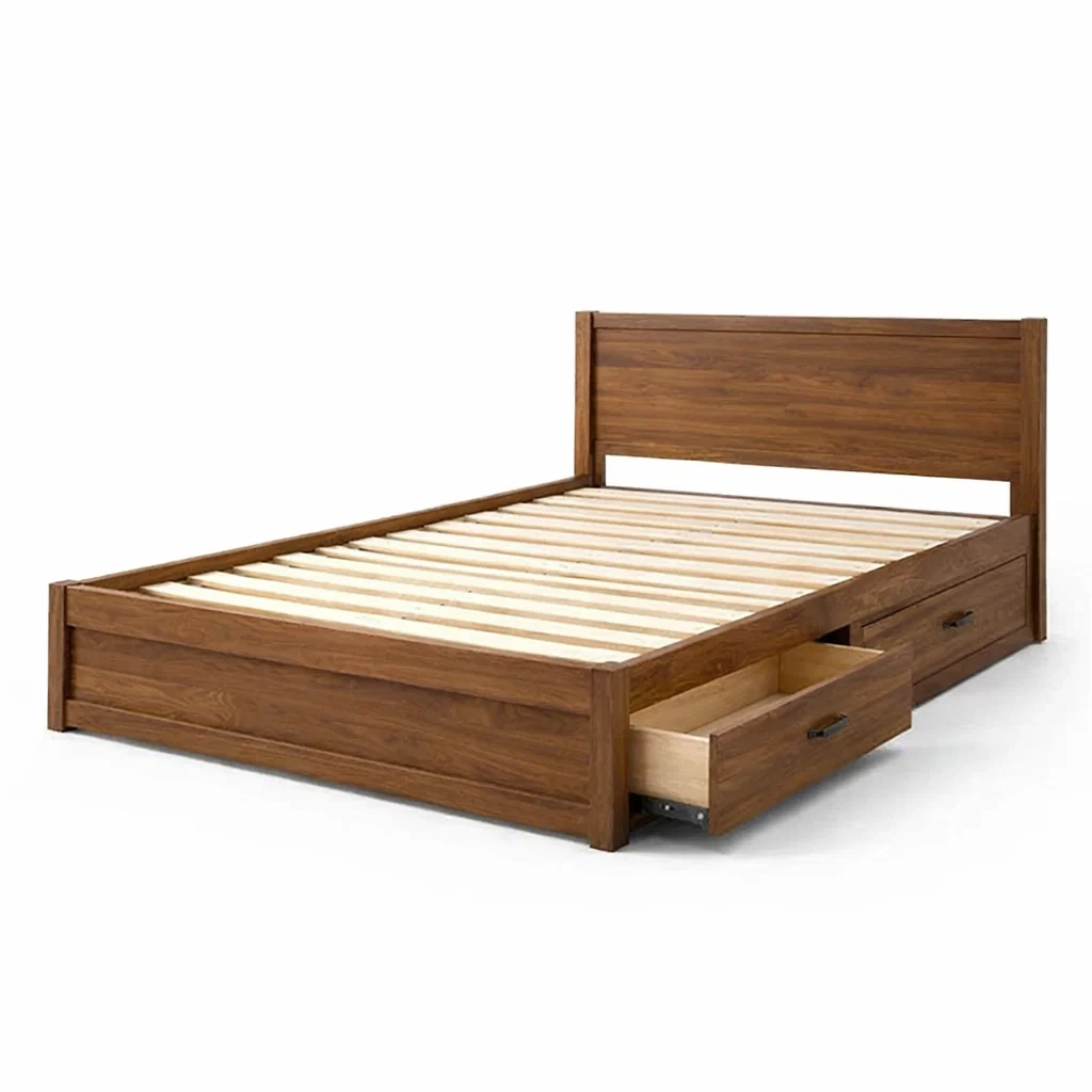 Letto contenitore in legno massiccio marrone con cassetti