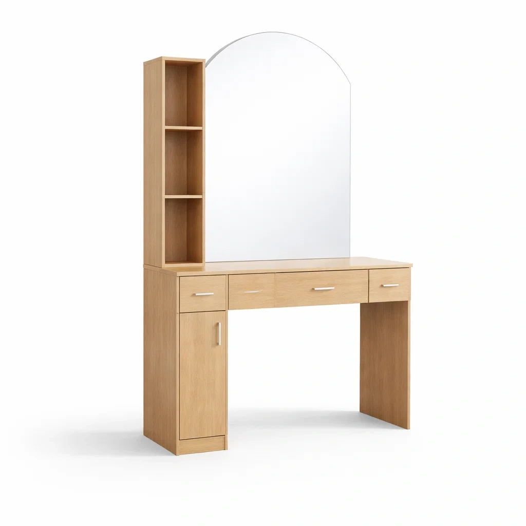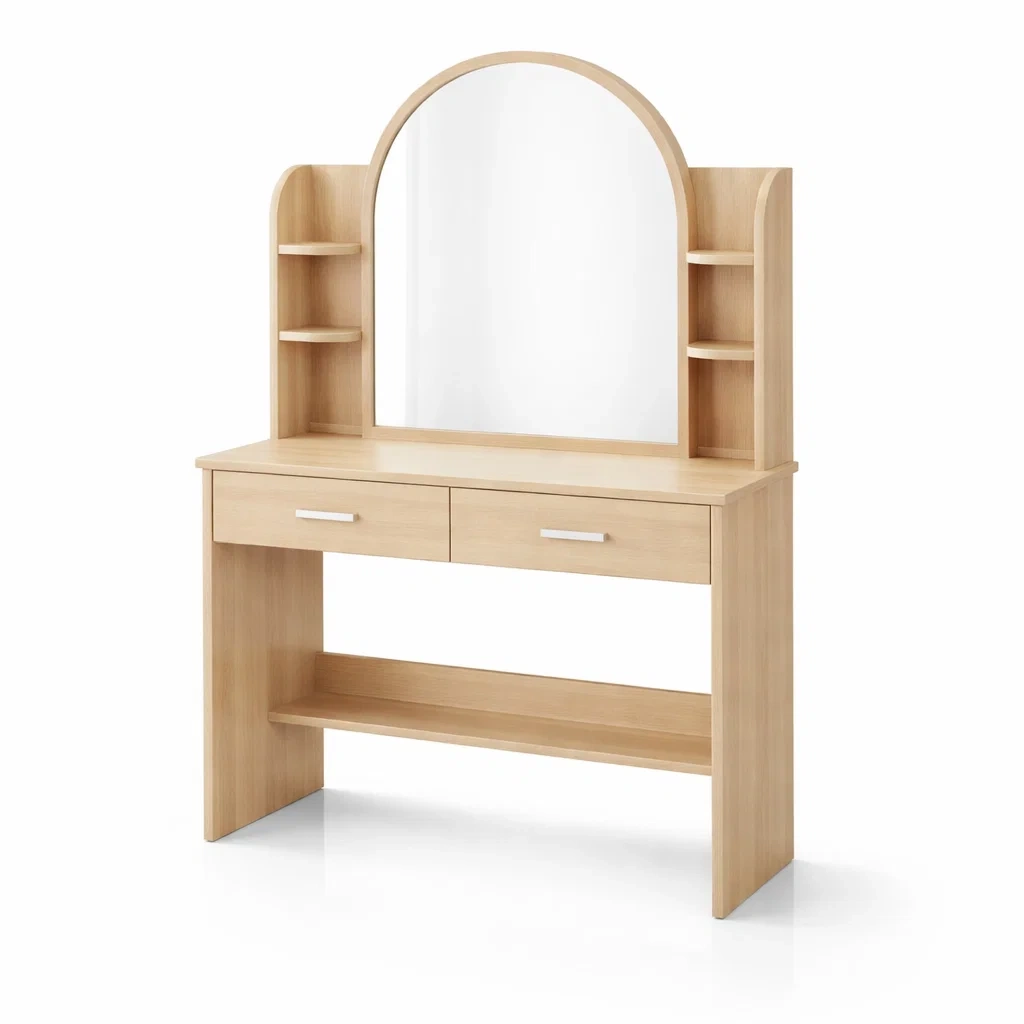 Toeletta in legno chiaro con specchio ad arco