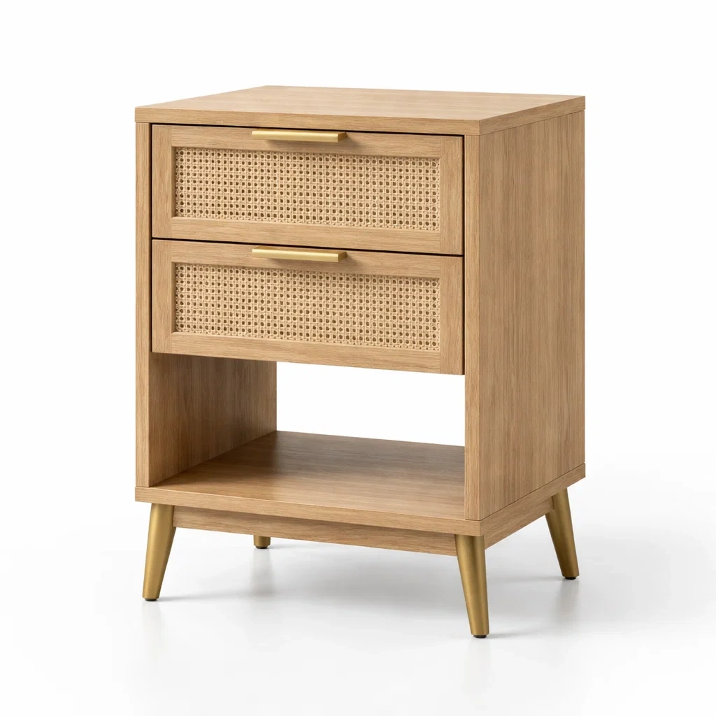 Comodino in legno MDF e rattan con due cassetti