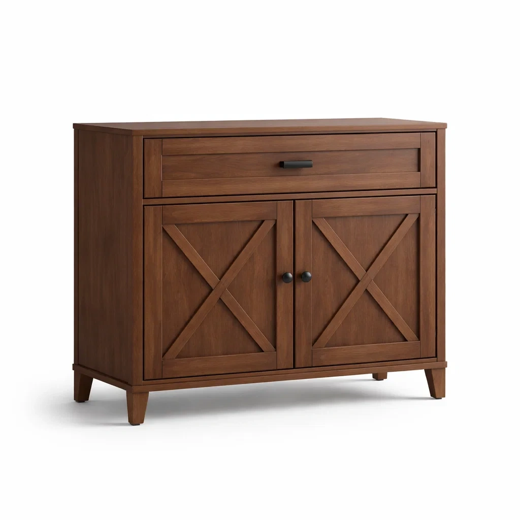 Struttura: 1 cassetto, 2 ante con dettagli incrociati