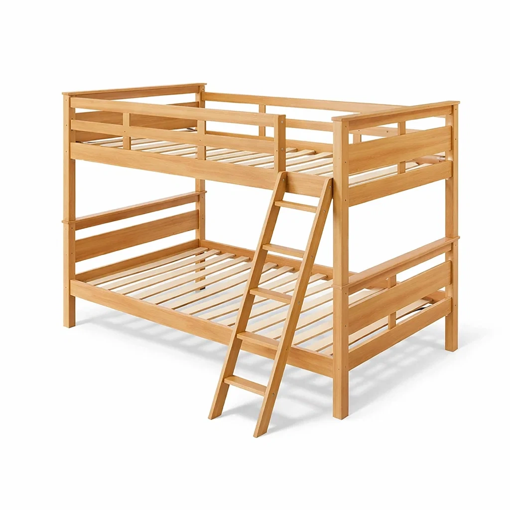 Letto a castello in legno naturale con scala