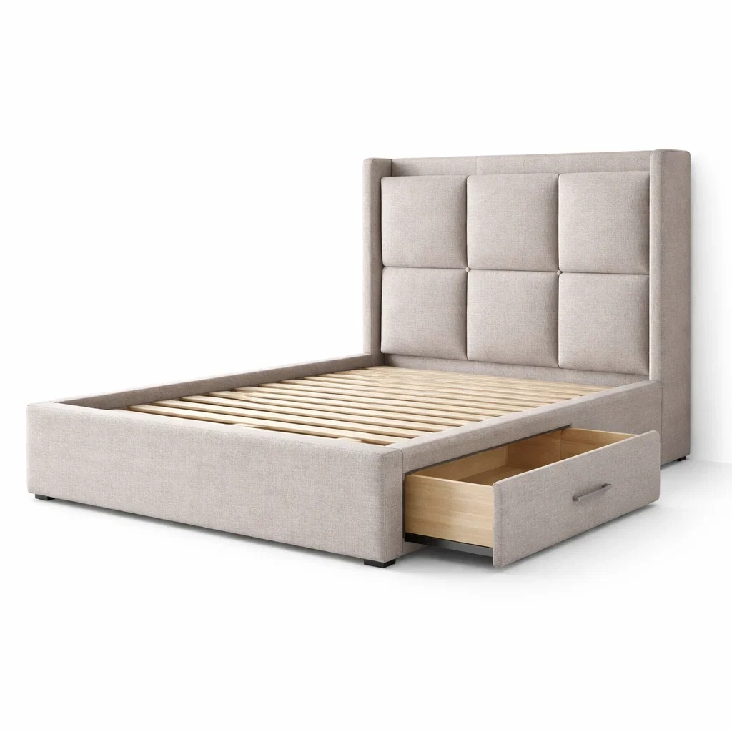 Caratteristiche: Testiera imbottita, cassetti sotto il letto per lo stoccaggio.