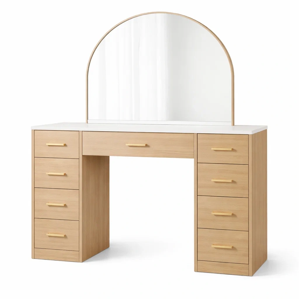 Dimensioni: Lunghezza: 120 cm, Larghezza: 45 cm, Altezza totale: 140 cm (compreso lo specchio).